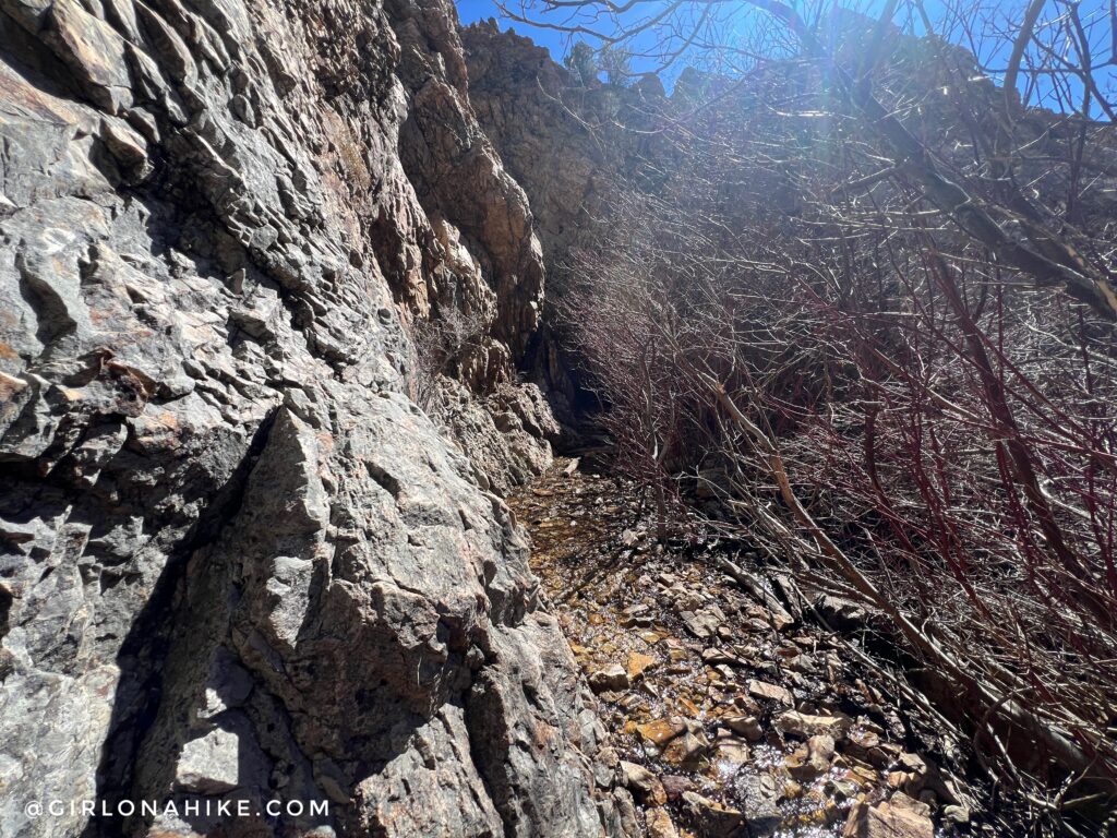 Park in the dirt pullout on the east side of Wasatch Blvd near Canyon Cove Drive.